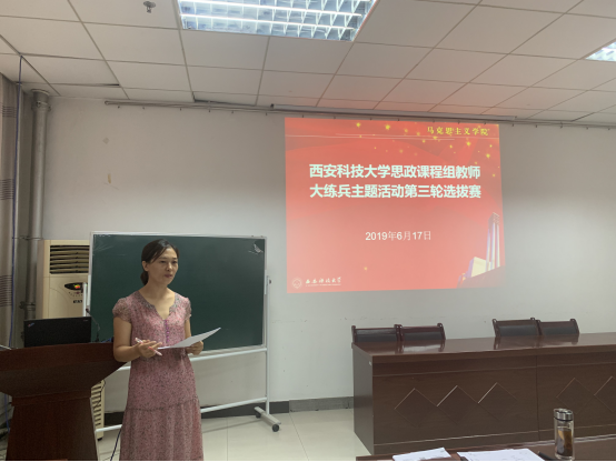 6月17日,伟德bv1946官网思政课程组教师“大练兵”主题活动第三轮选拔赛暨全员“大练兵”活动在雁塔校区伟德bv1946官网会议室举行。伟德bv1946官网教学副经理张铭钟主持比赛。