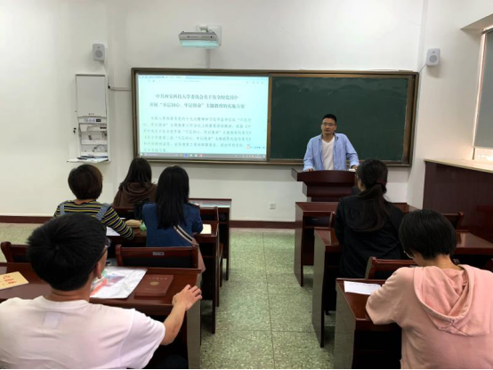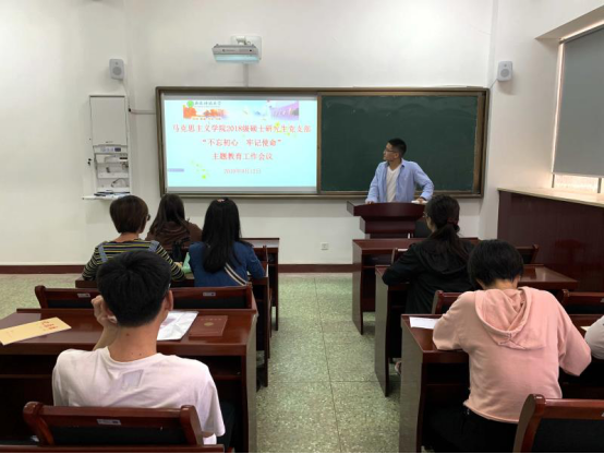 会上,李明首先带领支部党员重温了习近平总书记在“不忘初心、牢记使命”主题教育工作会议上的重要讲话精神。接着,按支部制定的主题教育专题学习计划,与参会人员共同学习主题教育实施方案。通过学习,大家深刻认识到,开展“不忘初心、牢记使命”主题教育是党员当前的重要政治任务,作为马克思主义理论学科研究生党员,要“读原著、学原文、悟原理”,认真学习并领会习近平总书记的重要讲话精神,充分认识主题教育的重要意义,严格落实“守初心、担使命,找差距、抓落实”的总要求,将实施方案内容落到实处,将责任和使命牢记心间。要始终牢记“为中国人民谋幸福,为中华民族谋复兴”的初心和使命,深入学习马克思主义专业知识和习近平新时代中国特色社会主义思想,结合工作实际,促使党性修养和学习工作双提升,切实履行员工党员的责任和担当。