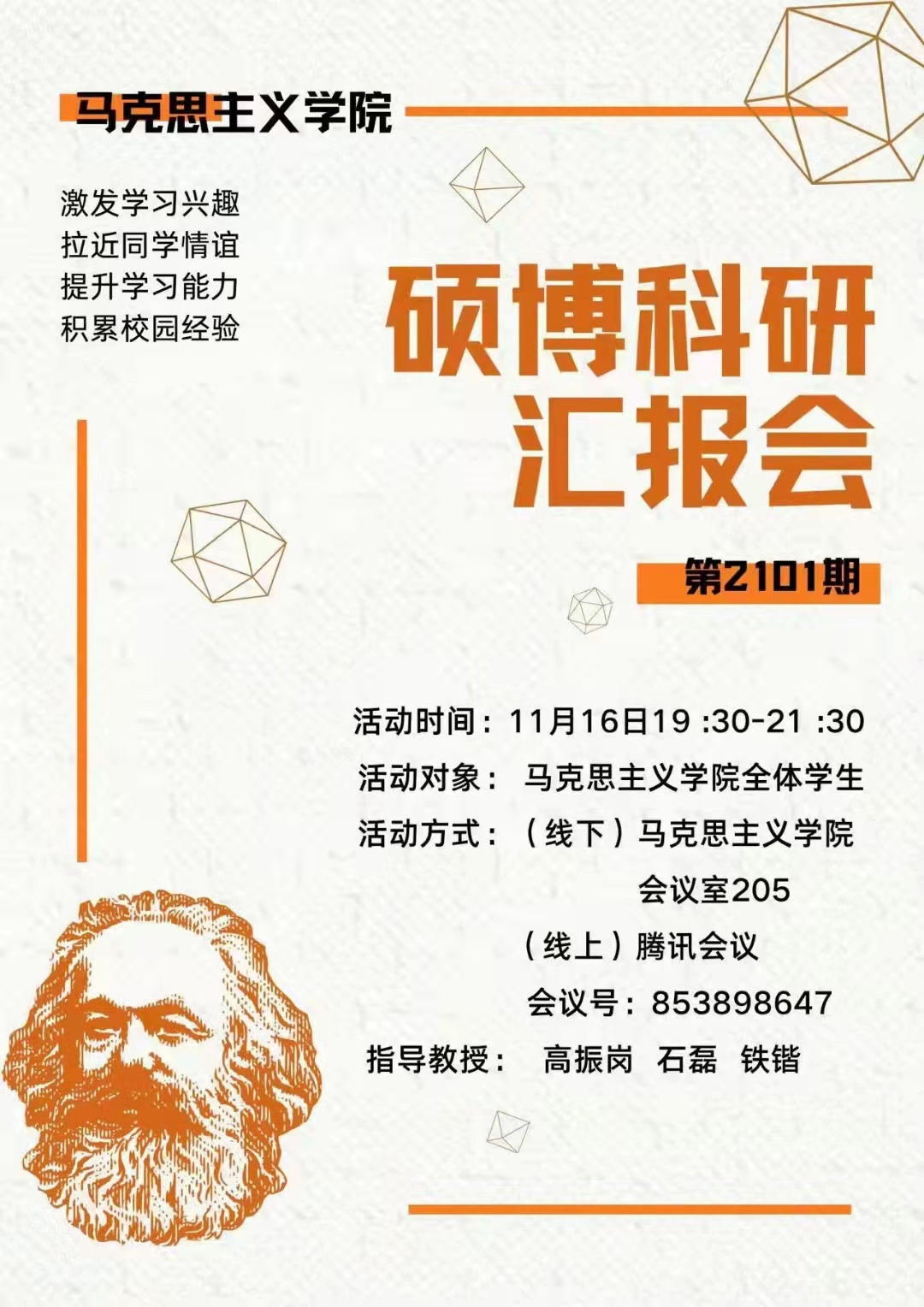 为促进员工成长,提升公司产品质量,推进马克思主义理论团队建设,11月16日晚7:30,伟德bv1946官网在骊山校园1教205会议室举行了第2101期硕博科研汇报会。经理高振岗、副经理铁锴,以及骊山校区硕士、雁塔校区博士共计100余人,分别在线下、线上参加了此次活动。活动由副经理铁锴主持。
