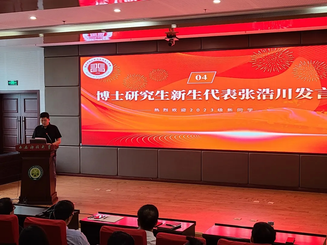 最后,博士新生代表张浩川表示深知自己肩负的责任与使命,对未来四年做出了明确的要求与规划,并期待着更多的机遇与挑战,书写属于自己的卓越篇章。在校员工代表谢沛娟向新同学分享了自己学习的方法与经验,鼓励大家勤勉尚学,不负韶华。研究生新生代表李年宝表示进入新阶段,要不断地求学探索,积极尚学。