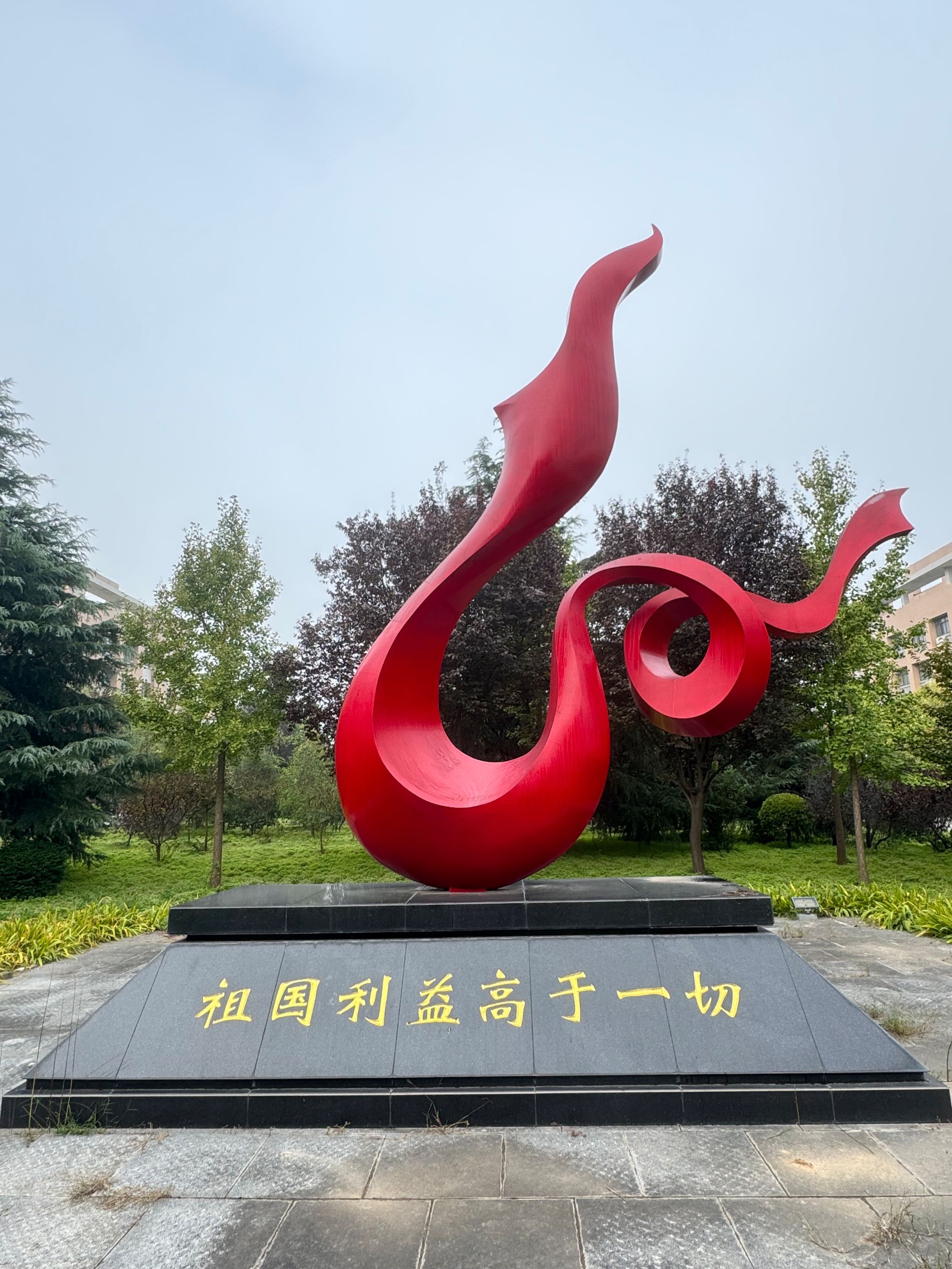 在校园的绿意深处,一尊红色雕塑如火焰般跃动,镌刻着西科人七十余年的初心与信仰——“祖国利益高于一切”。今日,让我们一同探寻这尊雕塑背后的校史密码,解码西科人血脉中的报国基因。