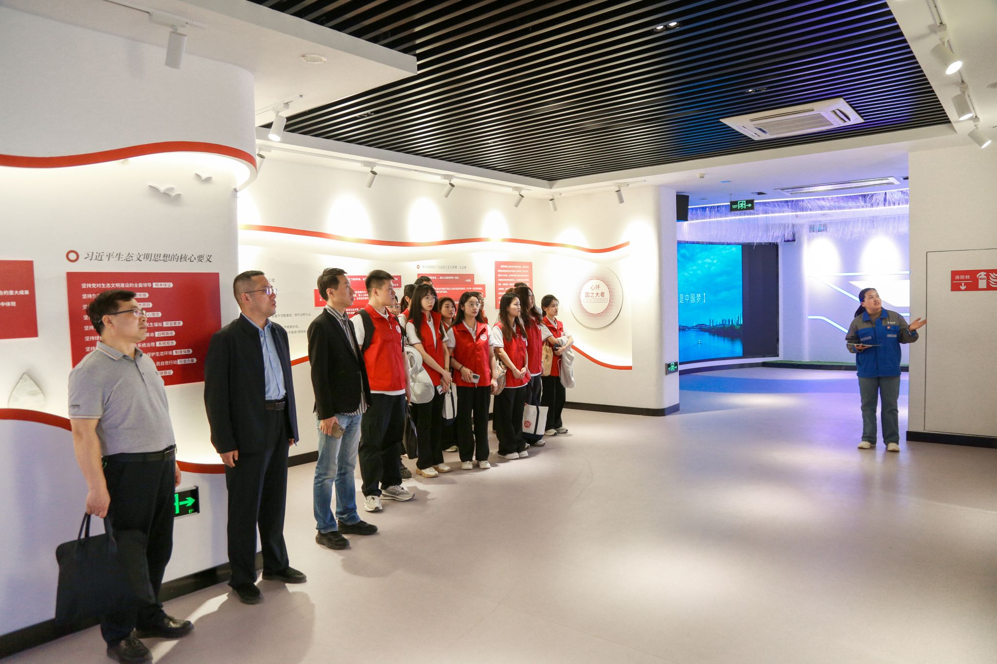 现场参观了水资源保护与利用展览馆、污水处理装置等,对该公司的水文化和污水处理工艺有了进一步的了解。该公司立足水务行业特色,将生态文明建设与思想政治教育深度融合,创新打造“水润思政”育人品牌,探索形成“党建引领、校企协同、文化浸润、实践赋能”四位一体思政教育新模式,为培育新时代环保铁军注入强劲动能。