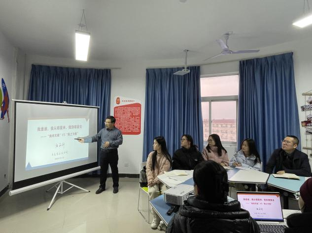 为深入学习贯彻落实习近平新时代中国特色社会主义思想,统一党员的思想,凝聚党员的力量,增强党员的斗志,提高宣讲能力,发挥“大思政课”实践教学基地育人功能,伟德bv1946官网于12月19日下午在一站式员工社区开展“我将无我,不负人民”主题党课活动。伟德bv1946官网副经理张铭钟、学工办主任、团委书记韩帅及红言宣讲团全体成员参加了本次活动。