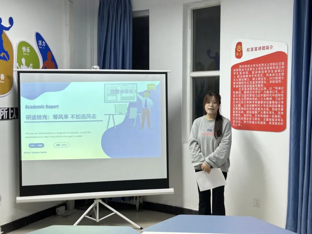 分享会上,王爱龄以“沿途拾光:等风来 不如追风去”为主题,从“个人情况、学习生活、员工工作和建议共勉”四部分展开经验分享。她结合自身发表4篇学术论文(导师一作)、获国家奖学金的经历,强调“勤奋积累”的重要性,提出“以目标为导向拆解任务”的科研方法;在竞赛方面,她以“互联网+”创新创业大赛获奖经验为例,建议同学们“跨学科组队、聚焦社会痛点”;针对学业压力,她分享“番茄工作法”与“运动解压”的心得,鼓励大家“以笔为剑,以梦为马,在自我博弈中成长”。