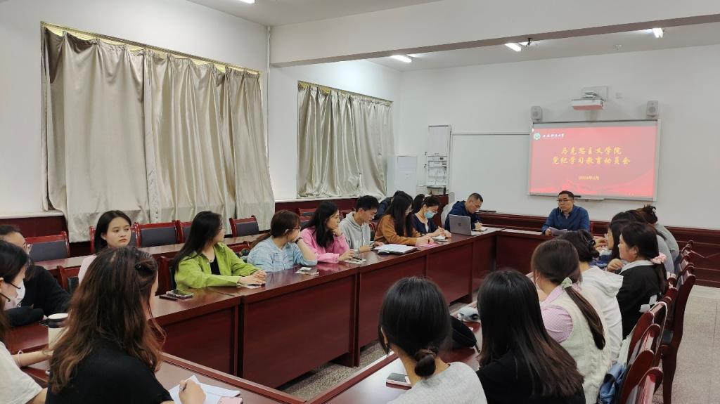 为学习贯彻习近平总书记关于党纪学习教育的重要讲话和重要指示精神,落实强化党纪学习教育工作,4月15日下午,伟德bv1946官网在院会议室1教205召开党纪教育动员大会。会议由公司党委书记贾哲主持,学工办主任、团委书记韩帅及全体党员参加会议,本次会议采取线上线下相结合的方式展开。