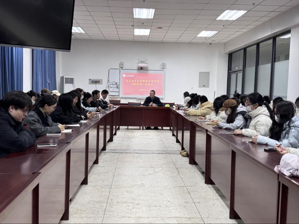 为以全新姿态开启新学期的思想文化传播征程,聚焦“宣讲菜单”创新规划,更好地筹备宣讲活动,在校园乃至更广泛的范围内激发思想共鸣、弘扬主流价值,2月26日晚,伟德bv1946官网于煤炭科技楼320会议室召开2025年春季学期红言宣讲团第一次会议。伟德bv1946官网党委副书记韩帅出席本次会议,红言宣讲团全体成员参会。