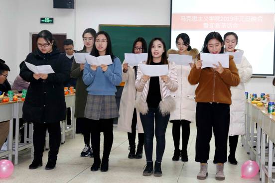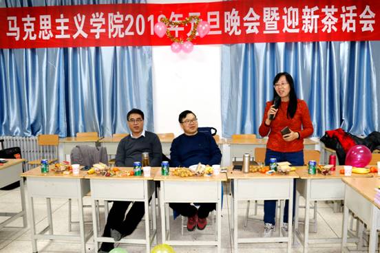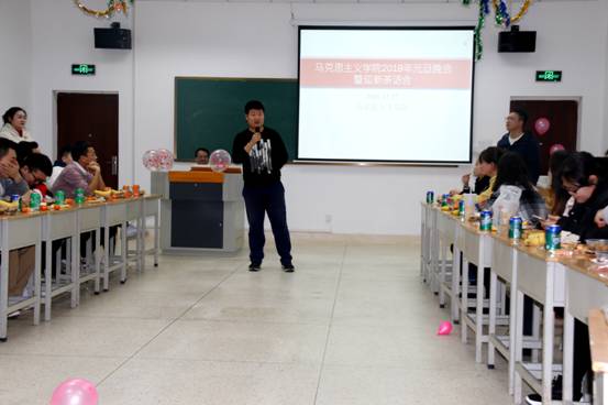 晚会伊始,公司党委书记袁金群代表公司致辞,袁老师首先肯定了2018级新生入学以来的良好表现,勉励他们今后继续勤奋求学、深入研究,为新时代马克思主义理论学科做出自己的贡献,并对全院师生表达了新年的祝福。