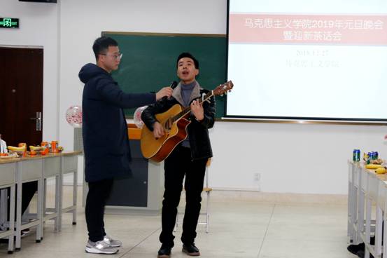 晚会在2016级研究生翟强强同学的吉他弹唱《旅行》中拉开了帷幕,节目精彩纷呈,诗朗诵《走进新时代》、《新贵妃醉酒》等,公司老师李金勇教授、周静教授也为师生表演了节目,观众情绪高涨,喝彩声此起彼伏。随整场晚会共14个节目,历时两个半小时。晚会期间穿插游戏环节,增强晚会的趣味性,也为师生们送去了欢乐与祝福。