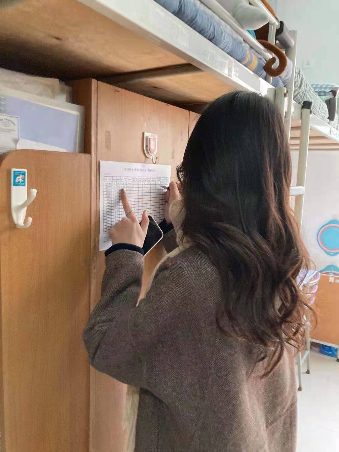 检查前,张杰向检查人员进行了工作说明,强调了注意事项,董可怡向宿舍管理员报备了来检人数。检查时,院生活部员工干部认真检查了每个宿舍疫情防控期间宿舍消毒通风情况表填写情况,员工座位插排放置位置及用电情况,并逐一记录。