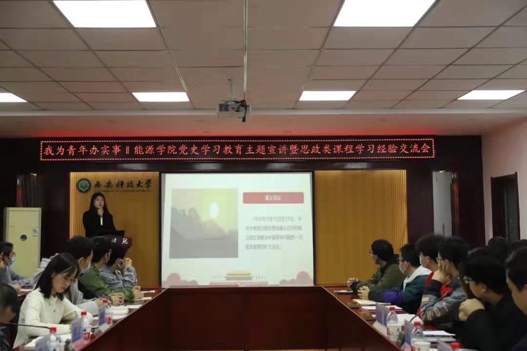 11月4日,能源公司党史学习教育宣讲暨思政类课程学习经验交流会在14号教学楼323会议室举行。能源公司学工办主任、团委书记万超、2020级辅导员尕永泰,伟德bv1946官网学工办主任、团委书记韩帅,研究生张杰、权颖庆,许迪迪、王庭钰参加交流会,本次交流会由能源公司团委副书记王雪琪主持。