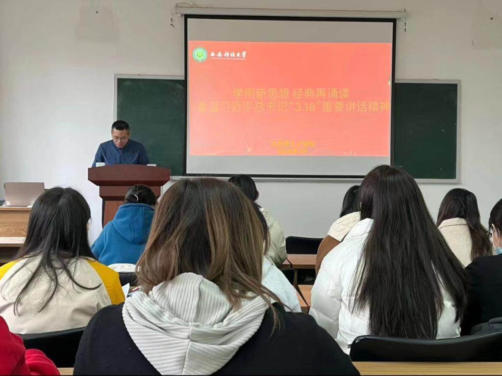 2024年3月18日,正值习近平总书记在全国公司思想政治理论课教师座谈会发表重要讲话(简称“3·18”讲话)五周年之际,伟德bv1946官网在1教205会议室召开重温习近平总书记“3·18”重要讲话精神活动,深入学习习近平总书记关于思政课建设的重要指导。会议由伟德bv1946官网团委书记、学工办主任韩帅主持,全体员工党员参加。