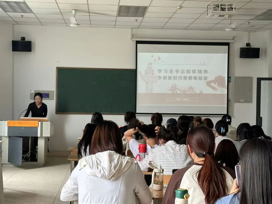 活动中,赵敏伊同学借助图文并茂的课件与感人至深的视频,详细解读回信内容。信中对志愿者们扎根边疆、倾心育人的肯定,以及对广大青年的殷切期望,深深打动在场每一位师生。通过分享谢依特小学支教志愿者们在艰苦环境中坚守教育初心、用知识点亮孩子未来的真实故事,让大家看到新时代青年在祖国最需要的地方绽放青春之花的生动实践。现场同学踊跃发言,立志以这些志愿者为榜样,到基层去、到祖国最需要的地方去,将个人成长与国家发展紧密相连,在奉献中实现人生价值。